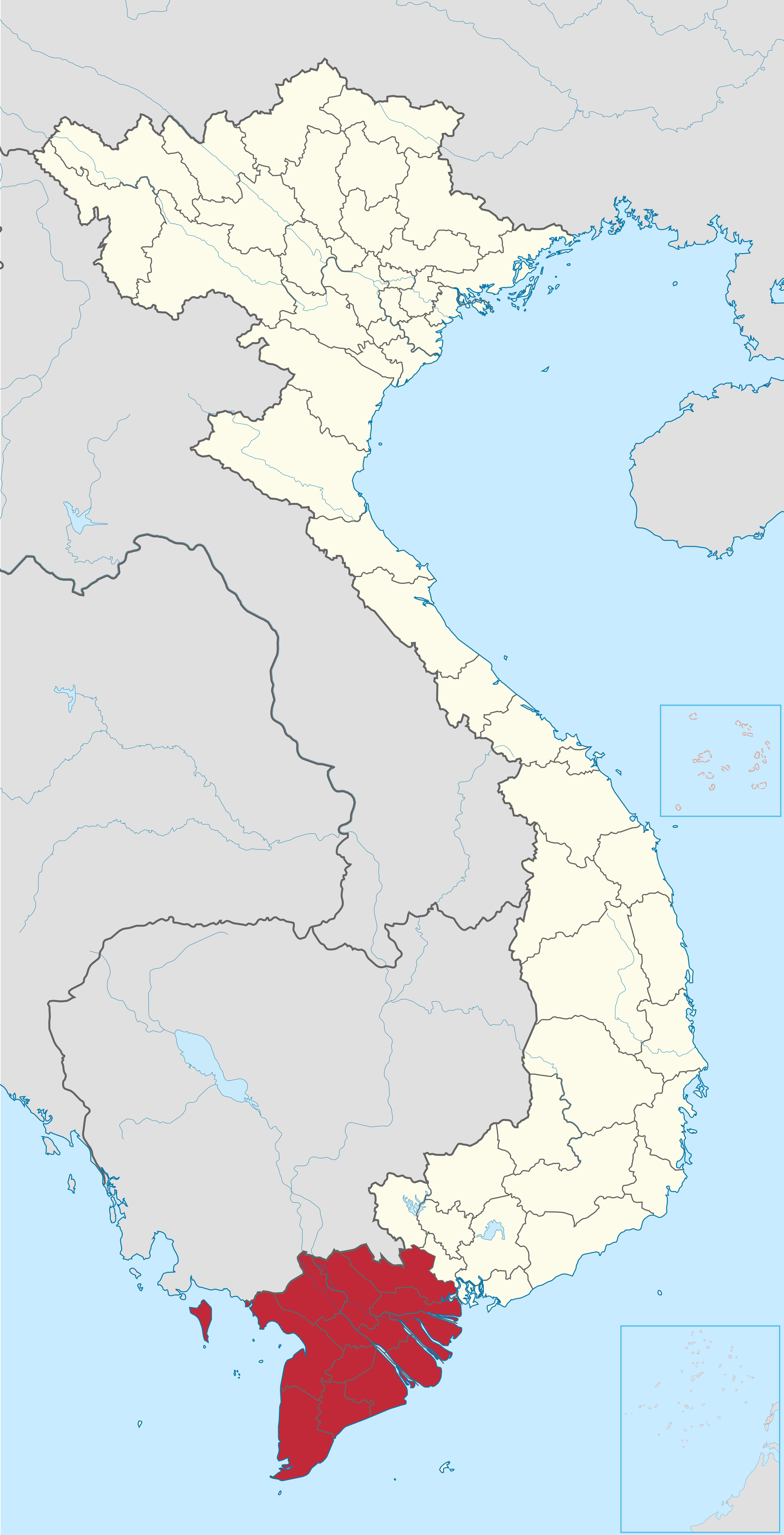 베트남 내 메콩강 삼각주 지역의 위치
