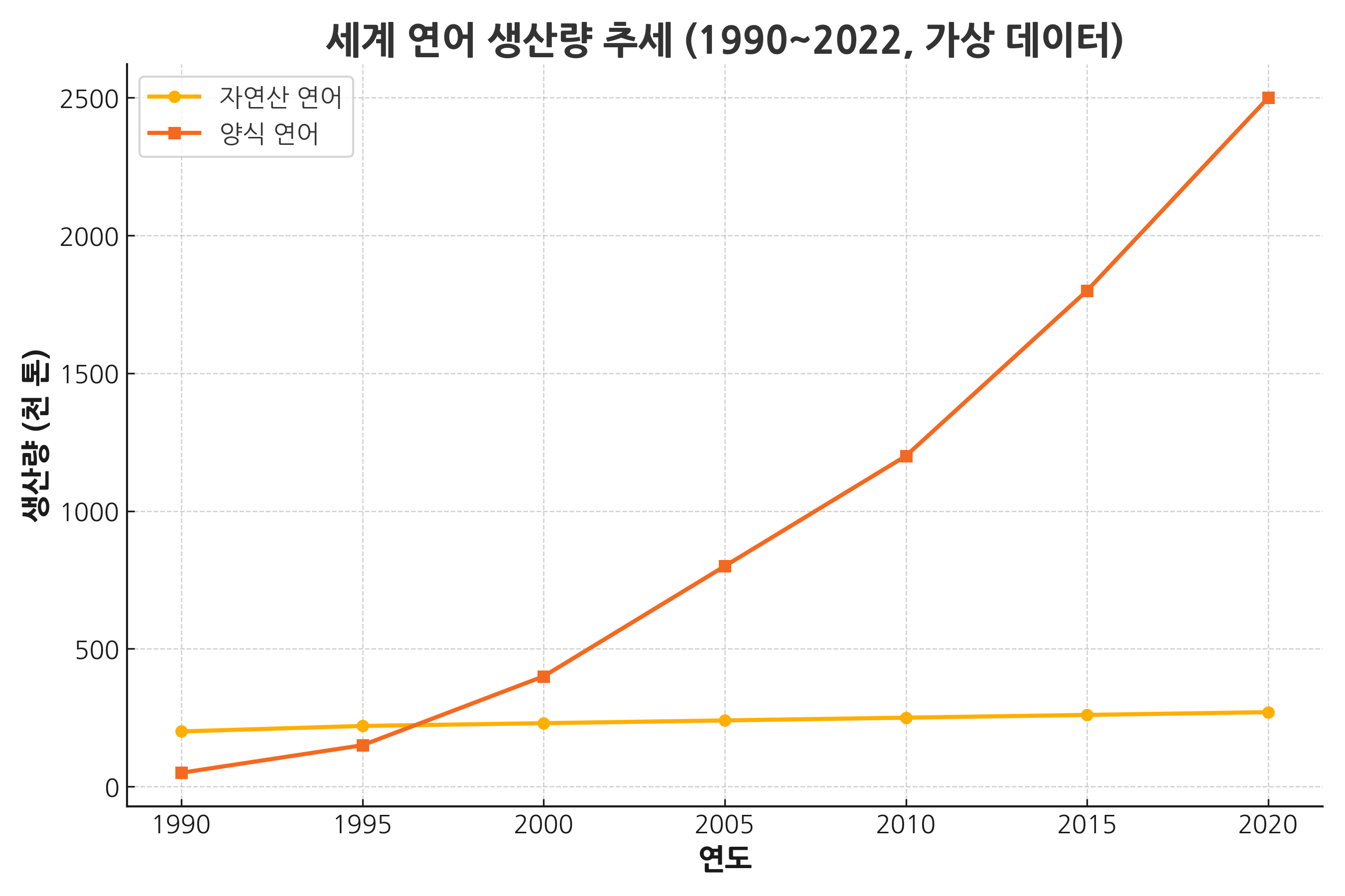 그림 1. 세계 연어 생산량 추세 (1990~2022)